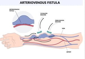 Arteriovenous fistula formation & dialysis Haemodialysis is a clinical method that assists patients suffering from end stage kidney failure. A dialysis machine takes over the